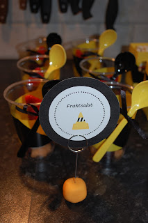 asjett, kopp/glass, sugerør, serviette, bordkort, duk og ferdig temapyntetbord.
